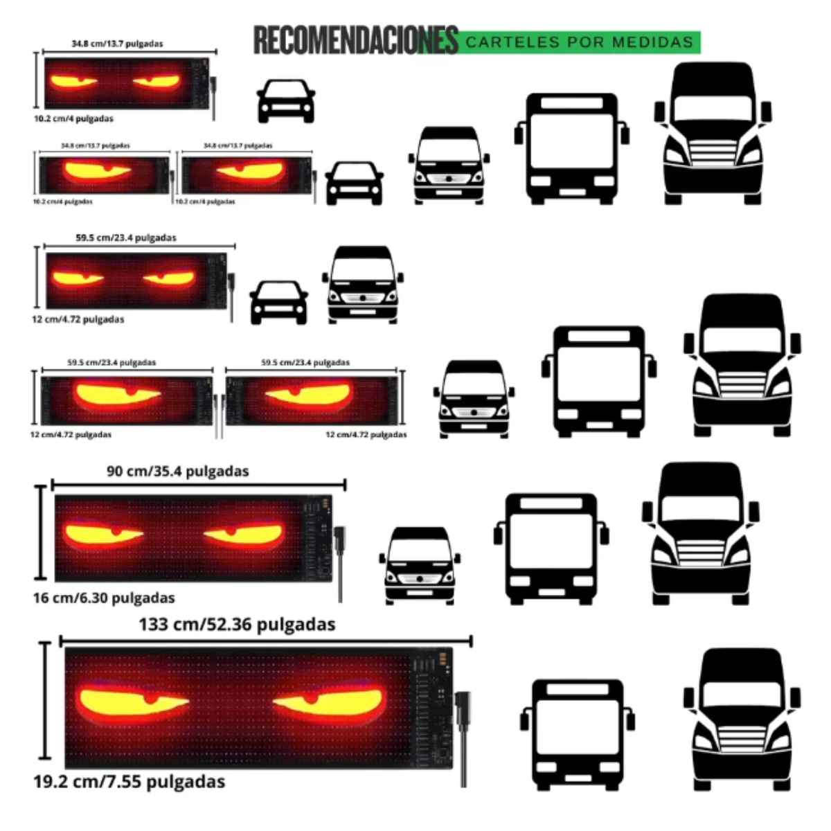 Ideal para vehículos (uso universal en el tablero o la ventana trasera), ofreciendo mensajes de bienvenida o avisos.