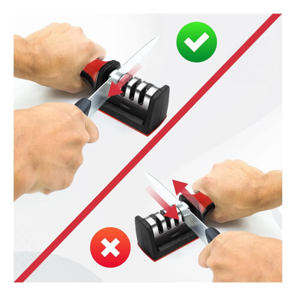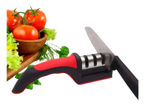 Dale nueva vida a tus cuchillos con este afilador 4 en 1 de acero inoxidable. Ideal para todo tipo de cocina, permite recuperar el filo de forma rápida, segura y sin esfuerzo.