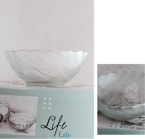 BOWL X6 12.5CM LIFE "CJA DE REGALO"Vidrio de alta calidad: Transparente, resistente y duradero.