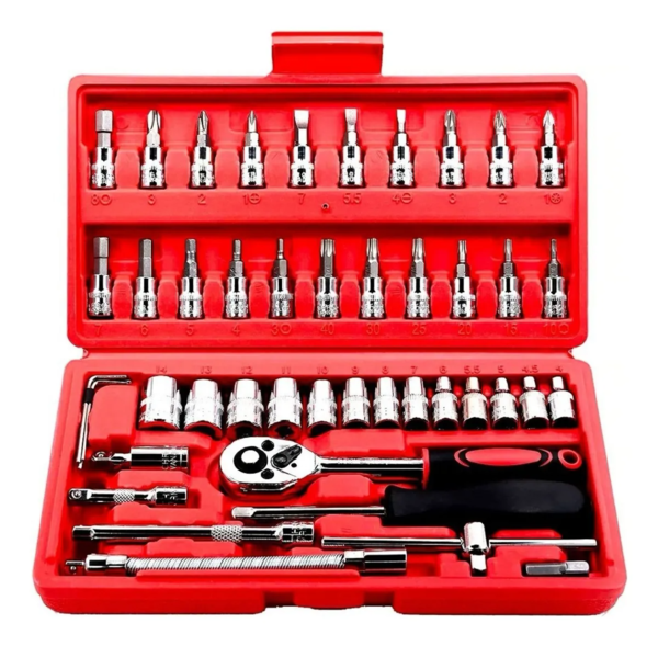 Ideal para el hogar, garaje o taller, este completo set de 46 piezas reúne lo esencial para reparaciones básicas y proyectos de bricolaje. Todas las herramientas vienen organizadas en una caja resistente y portátil, lo que facilita su transporte y almacenamiento.