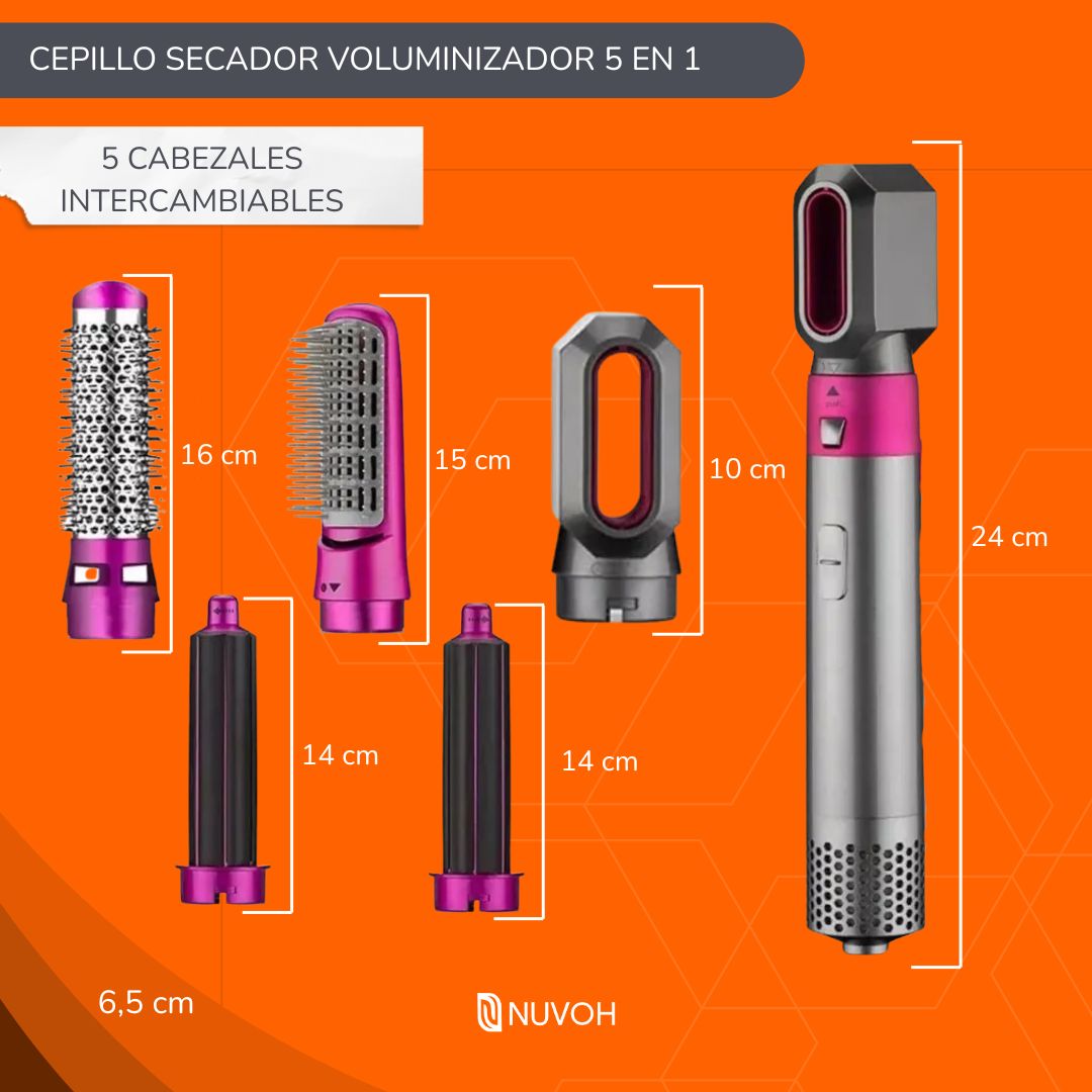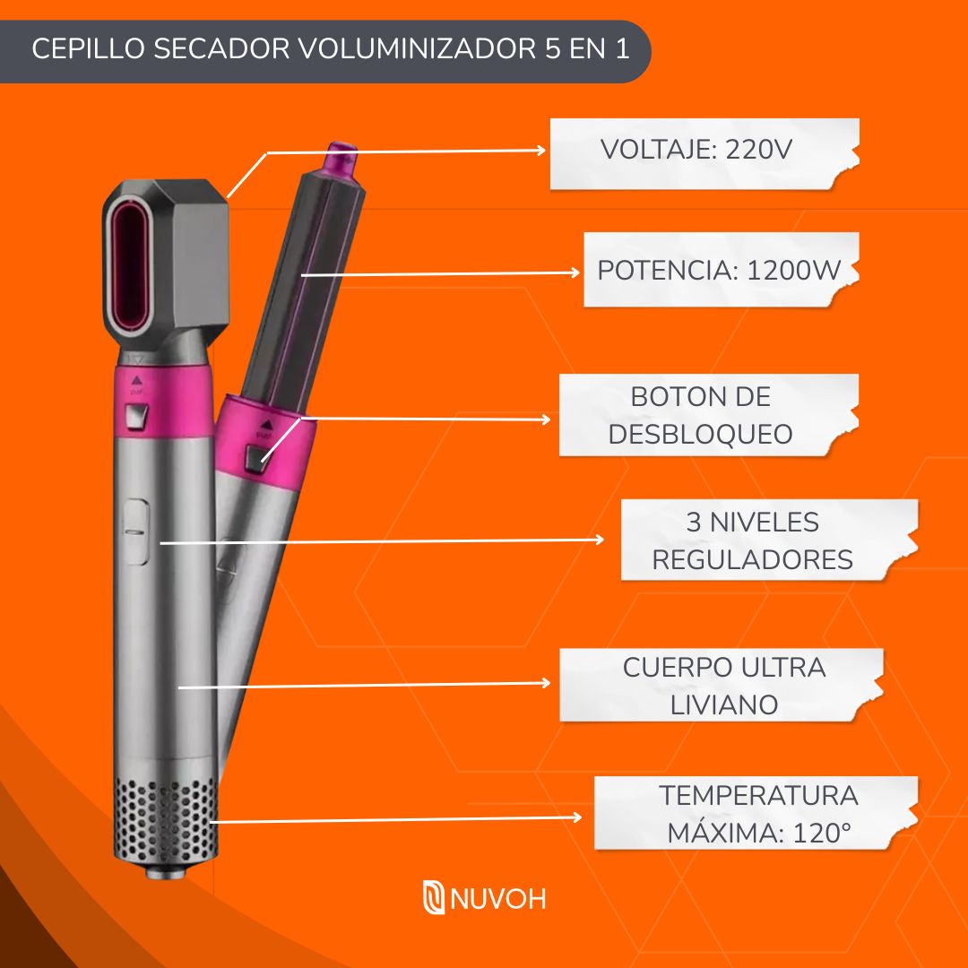 Multifunción 5 en 1: Seca, riza, alisa, ondula y da volumen.