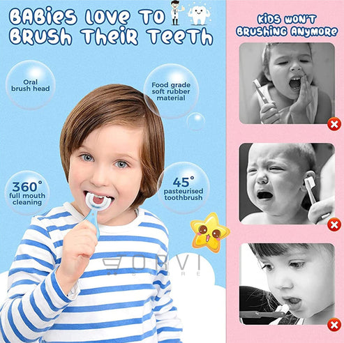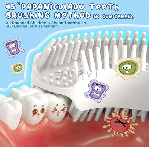 Haz la higiene bucal de los peques más divertida y cómoda con este cepillo en forma de U de silicona suave. Perfecto para bebés y niños pequeños, se adapta de forma ergonómica a la boca para limpiar encías y primeros dientes con delicadeza.