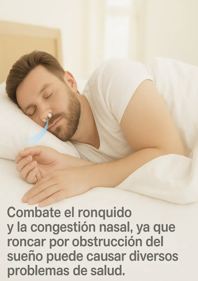 ¿DILATADOR NASAL O TIRAS NASALES? Las tiras externas ayudan… hasta que se despegan. Nuestro dilatador nasal interno “Stop Snoring Solutions” mantiene la forma de la nariz desde adentro, abre la vía aérea de manera constante y ofrece resultados inmediatos y duraderos.