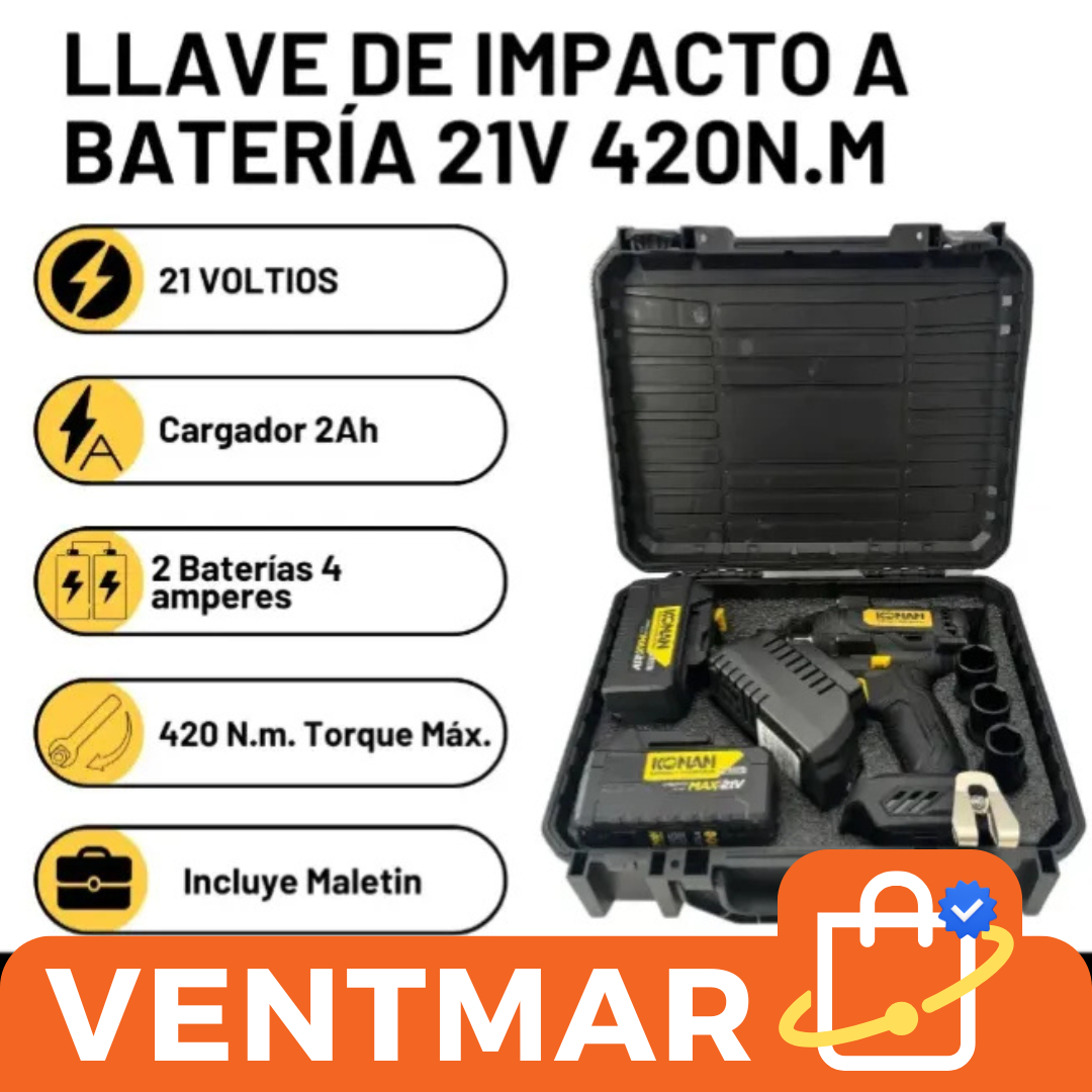 La Llave de Impacto Konan XPV 21V combina fuerza, autonomía y comodidad para profesionales exigentes. Su torque de 420 Nm y motor sin carbones permiten realizar cualquier tarea con eficiencia y control, mientras que las baterías de larga duración y el cargador rápido aseguran que el trabajo nunca se detenga.