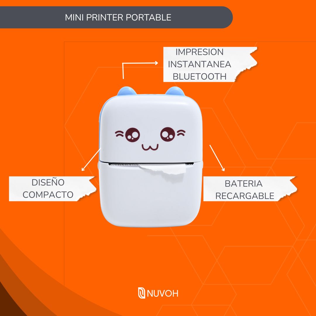 Descubrí la libertad de imprimir al instante y en cualquier lugar con esta adorable mini impresora portátil. Su diseño compacto y simpático de gatito la convierte en el accesorio perfecto para estudiantes, creativos y cualquiera que necesite plasmar ideas rápidamente desde su smartphone o tablet.
