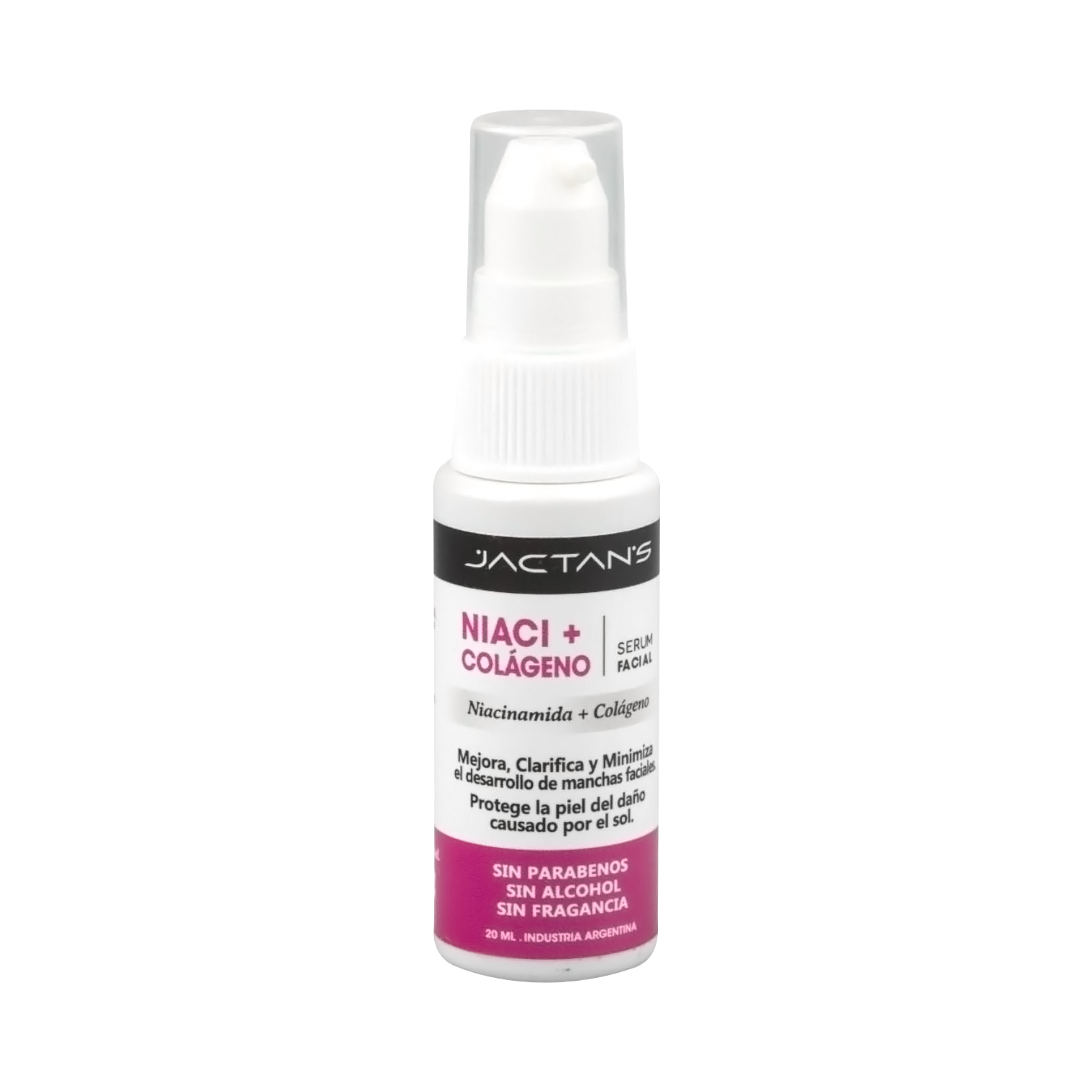Sérum de niacinamida y colágeno que unifica el tono y mejora la textura facialPromesa de alto valor: Corrección de manchas y firmezaProducto Certificado y registrado en ANMAT.Beneficios: