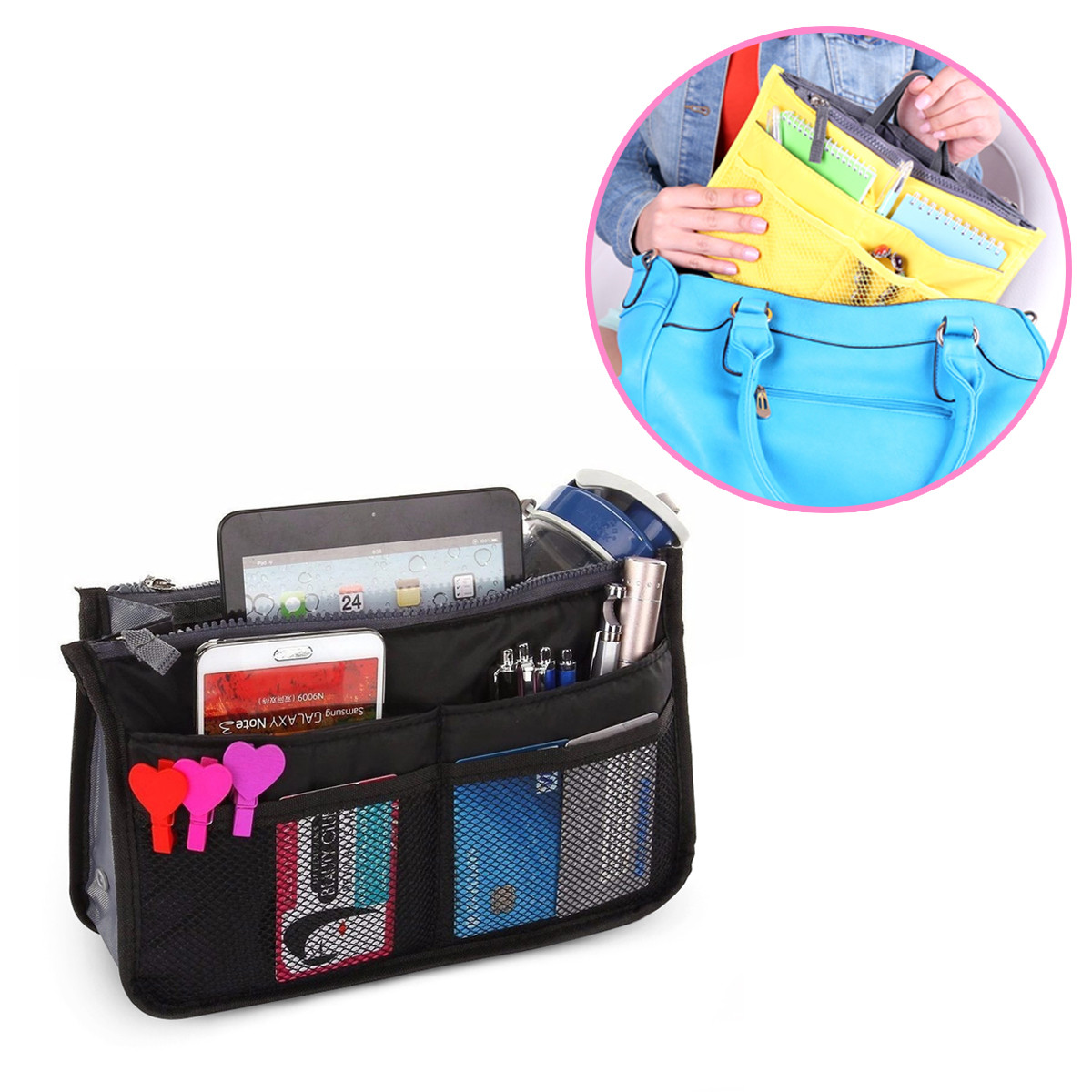 Con el nuevo Organizador Mini™ podrás ordenar tus llaves, celular, cargador, maquillaje y todas esas cosas chiquitas que siempre quedan en el fondo de tu cartera y nunca encontrás fácilmente.