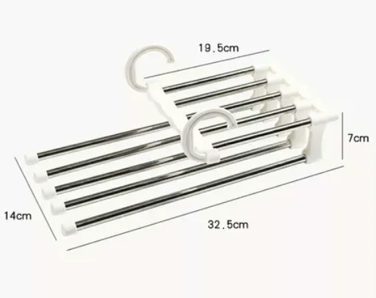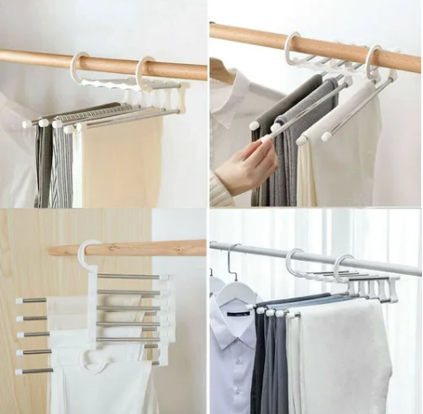 PERCHERO PANTALON 5 EN 1 PARA PANTALONES, ORGANIZADOR DE ROPA DE ACERO INOXIDABLE, COLGADOR PARA ARMARIO