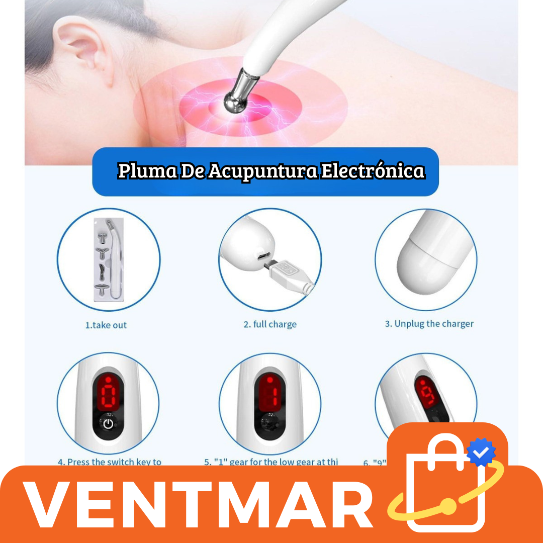 Alivie la fatiga y relaje los músculos con esta pluma de acupuntura recargable USB. Con 5 cabezales y 9 niveles de intensidad, es perfecta para cuello, brazos, hombros, manos y piernas. Ideal para uso diario en casa, oficina o para adultos mayores.