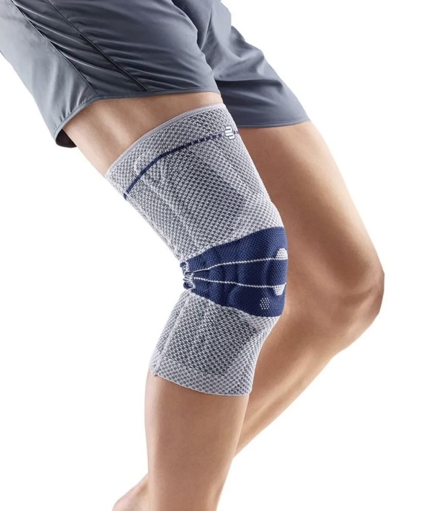 El soporte activo consiste en un tejido de punto contorneado anatómicamente y un cojín viscoelástico funcional integral en forma de anillo, la almohadilla Omega. Alivia el dolor proporcionando la presión terapéutica del soporte desde la rótula hasta los tejidos blandos de la rodilla. Dos protuberancias en el borde inferior de la almohadilla, las almohadillas , ejercen presión sobre la almohadilla de grasa infrapatelar, lo que también aumenta el alivio de la rótula y mejora el efecto analgésico. Las alas laterales se extienden hacia el espacio articular de la rodilla, proporcionando un alivio específico del dolor en el menisco en esta área sensible.