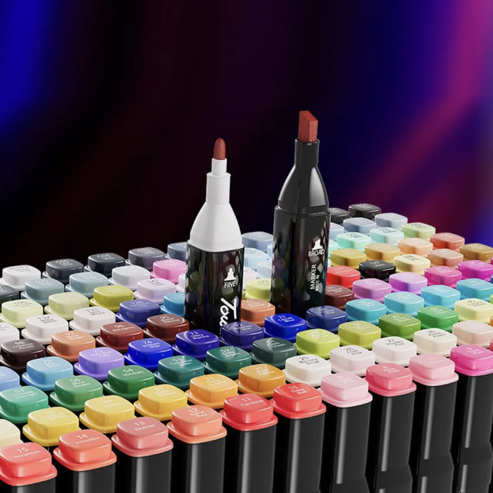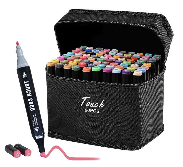 Este set de 80 plumones de la marca Set 80 es ideal para cualquier proyecto de arte o diseño. Cada marcador está hecho de plástico resistente y cuenta con una doble punta, lo que permite una variedad de trazos y técnicas.