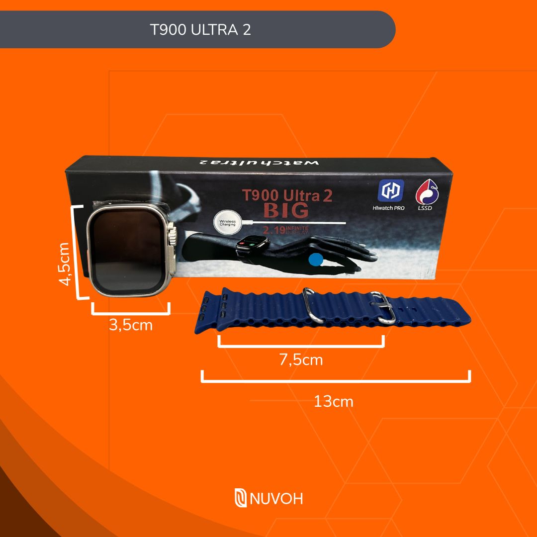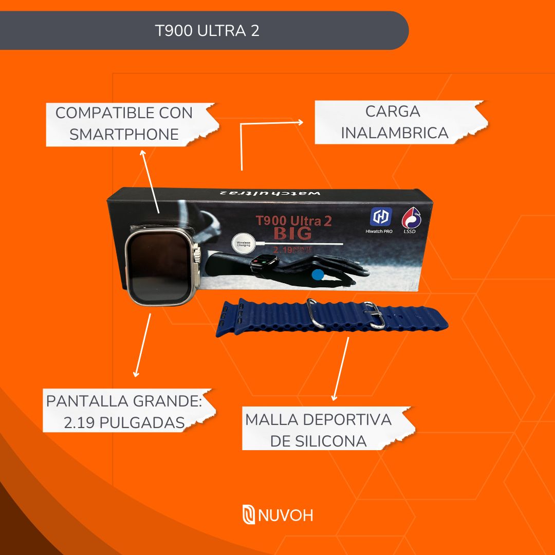 Incluye: Smart Watch T900 Ultra 2 BIG y cable de carga inalámbrica.