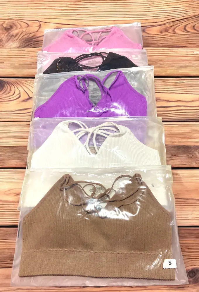 Top seamless importados, empaquetados cada uno de manera individual en bolsas ziploc propias de la marca.