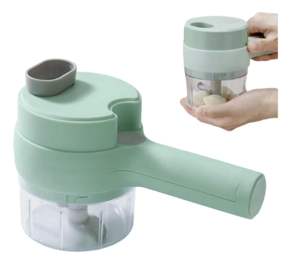 Facilita tus preparaciones en la cocina con este triturador eléctrico recargable, perfecto para picar y procesar alimentos de forma rápida y sin esfuerzo.