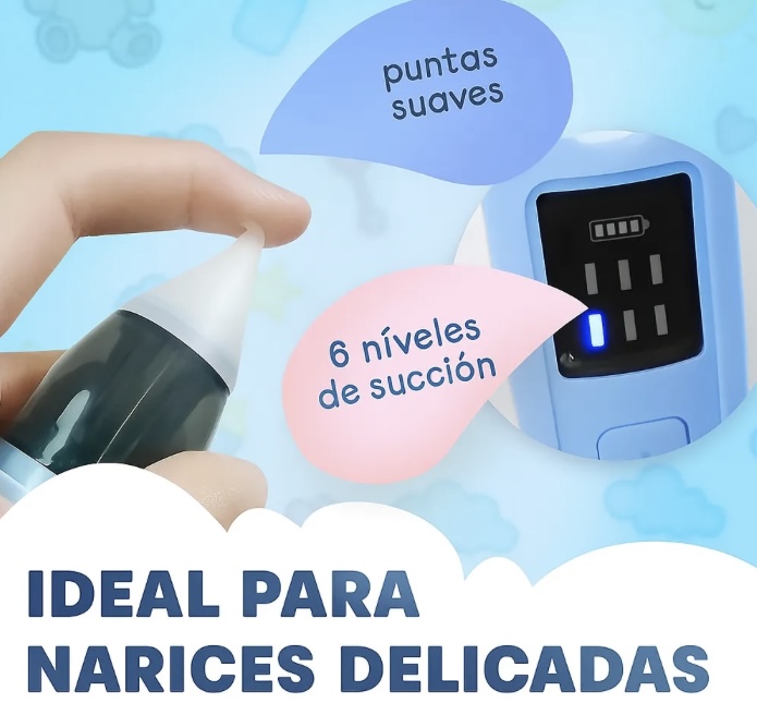 - 6 niveles de succión regulable – ajusta la intensidad según la necesidad. - Incluye 2 puntas de silicona suave – seguras para recién nacidos y niños pequeños. - Silencioso y potente – extrae eficazmente sin molestar el sueño del bebé. - Portátil y recargable por USB – úsalo en casa o llévalo donde lo necesites. - Fácil de limpiar – piezas desmontables y lavables con agua tibia. - Seguro e higiénico – libre de BPA y látex, cuidado total para narices delicadas.