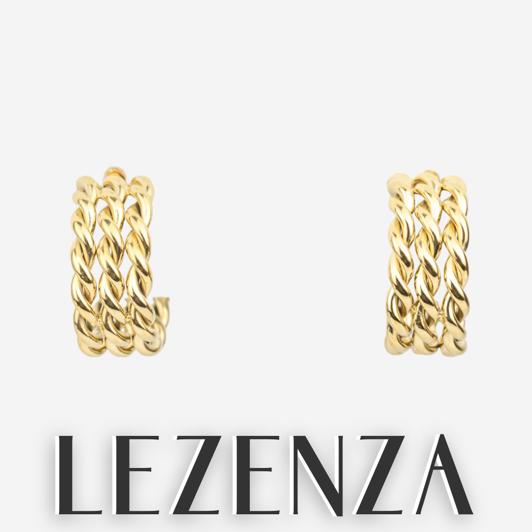 Descubre la sofisticación de los zarcillos trenzados dorados, una joya moderna y versátil que eleva cualquier look. Fabricados en acero inoxidable de alta calidad, son resistentes, antialérgicos y mantienen su brillo intacto con el paso del tiempo.